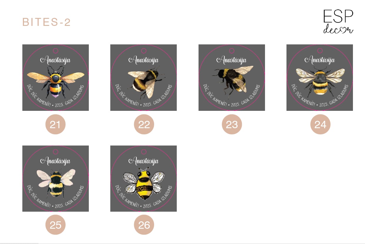 Ja neatrodat dizainu, kas uzrunā, vai vēlaties izveidot ar savu logo vai dizaina ideju, droši rakstiet uz e-pastu info@espdecor.lv vai WhatsApp: +371 28640532. 📧📱