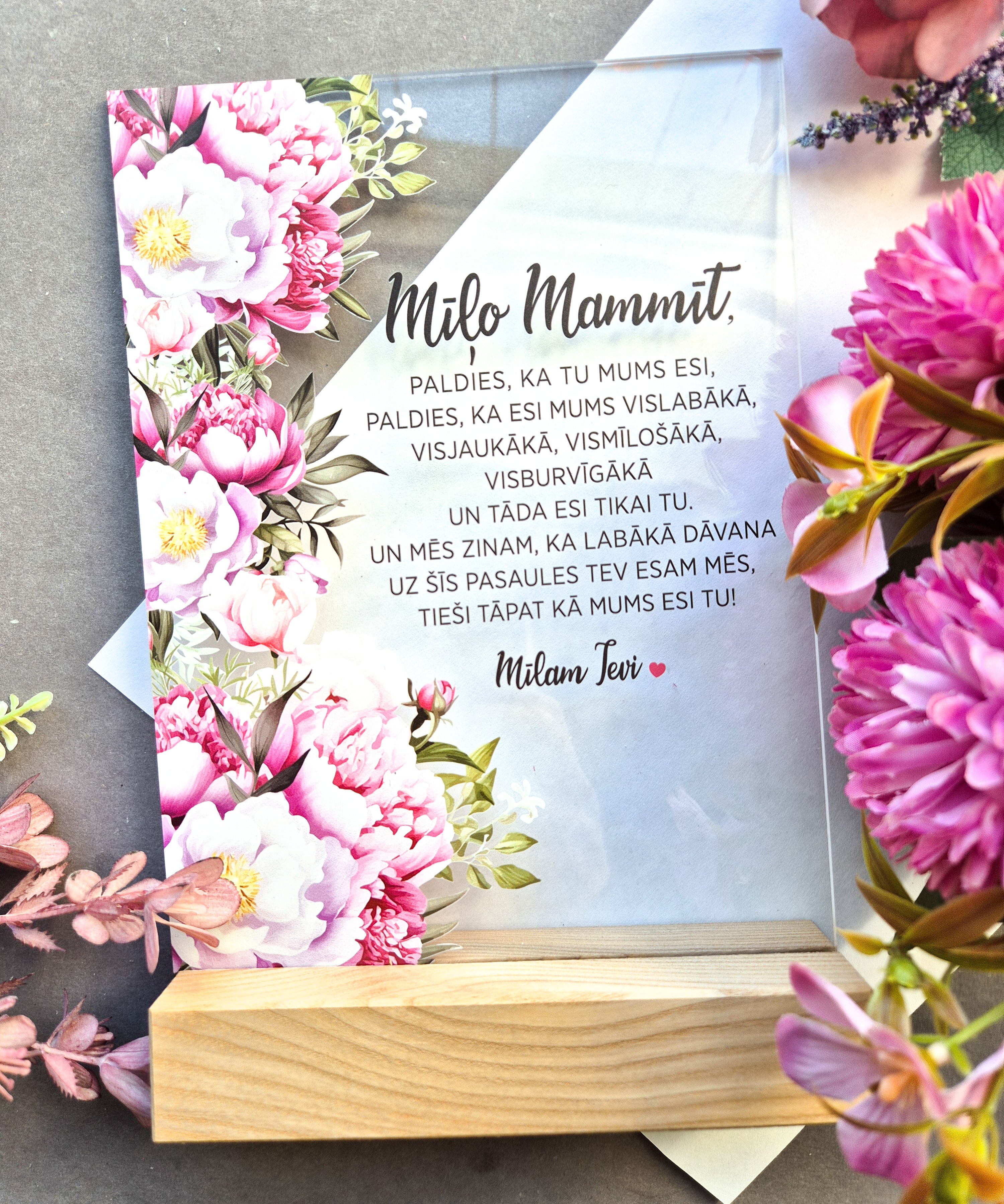 Izvēlies sirsnīgus koka dekorus un stikla izstrādājumus, kas pateiks “paldies” vismīļākajai mammai. Personalizētas Māmiņdienas dāvanas ar uzrakstiem, kas paliks sirdī uz ilgu laiku.